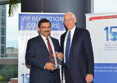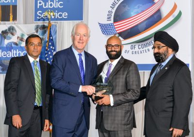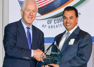 Senior US Senator for Texas and Keynote Speaker at the Gala, Senator John Cornyn warmly congratulated the Chamber for helping strengthen the critically important US India partnership. He noted that in the last two decades, organizations like the IACCGH have played an important role in deepening and strengthening cooperation between the two great democracies. He also referred to the milestone achieved by India last week in joining the exclusive club of countries to orbit Mars and saw opportunities for collaboration with NASA’s space mission in Houston.
