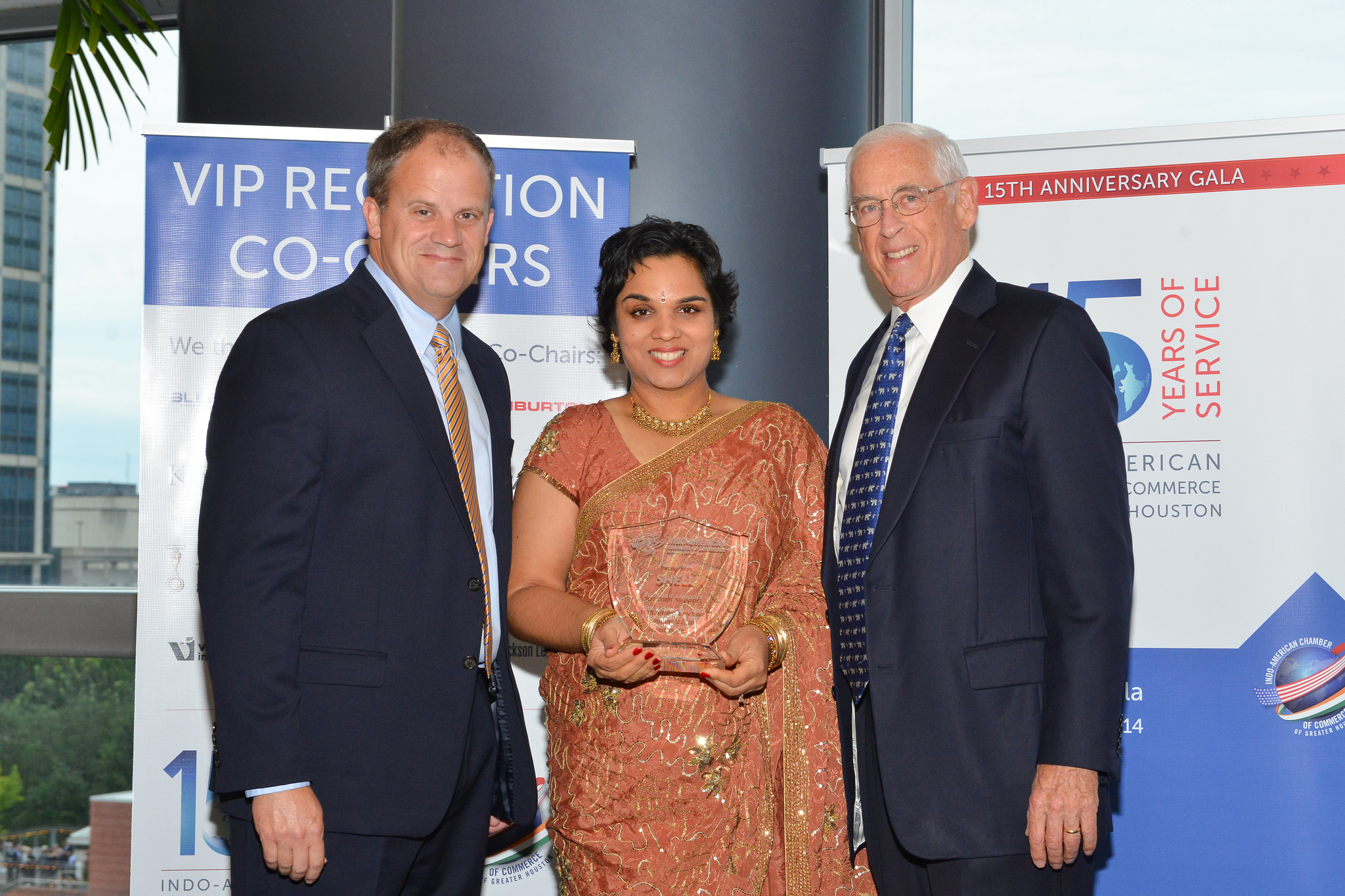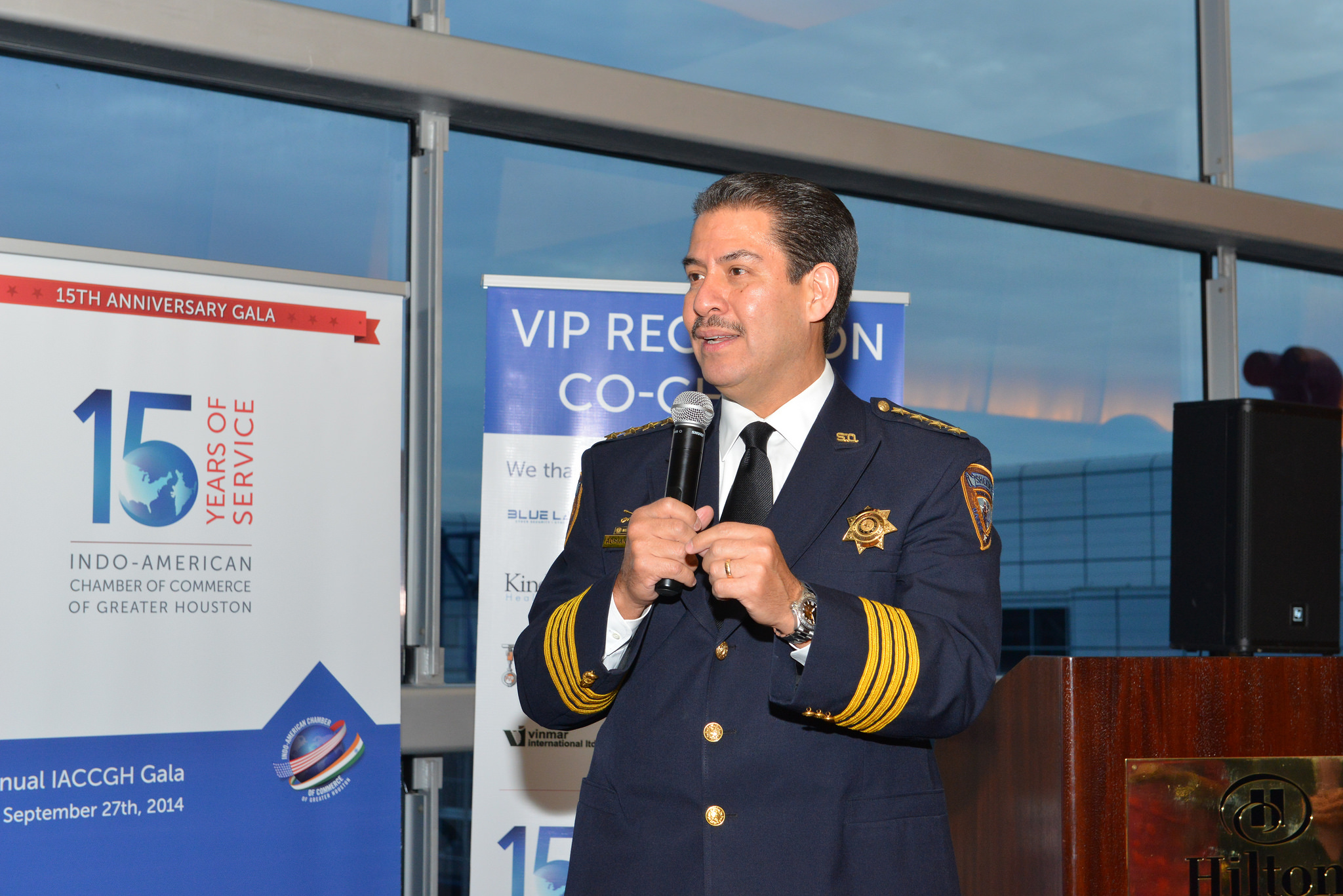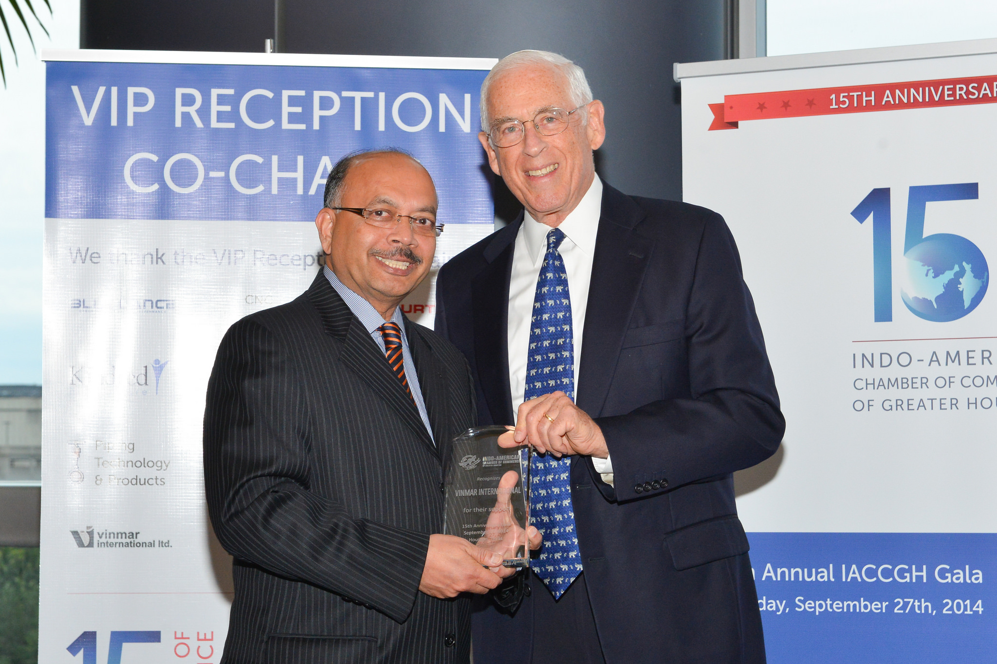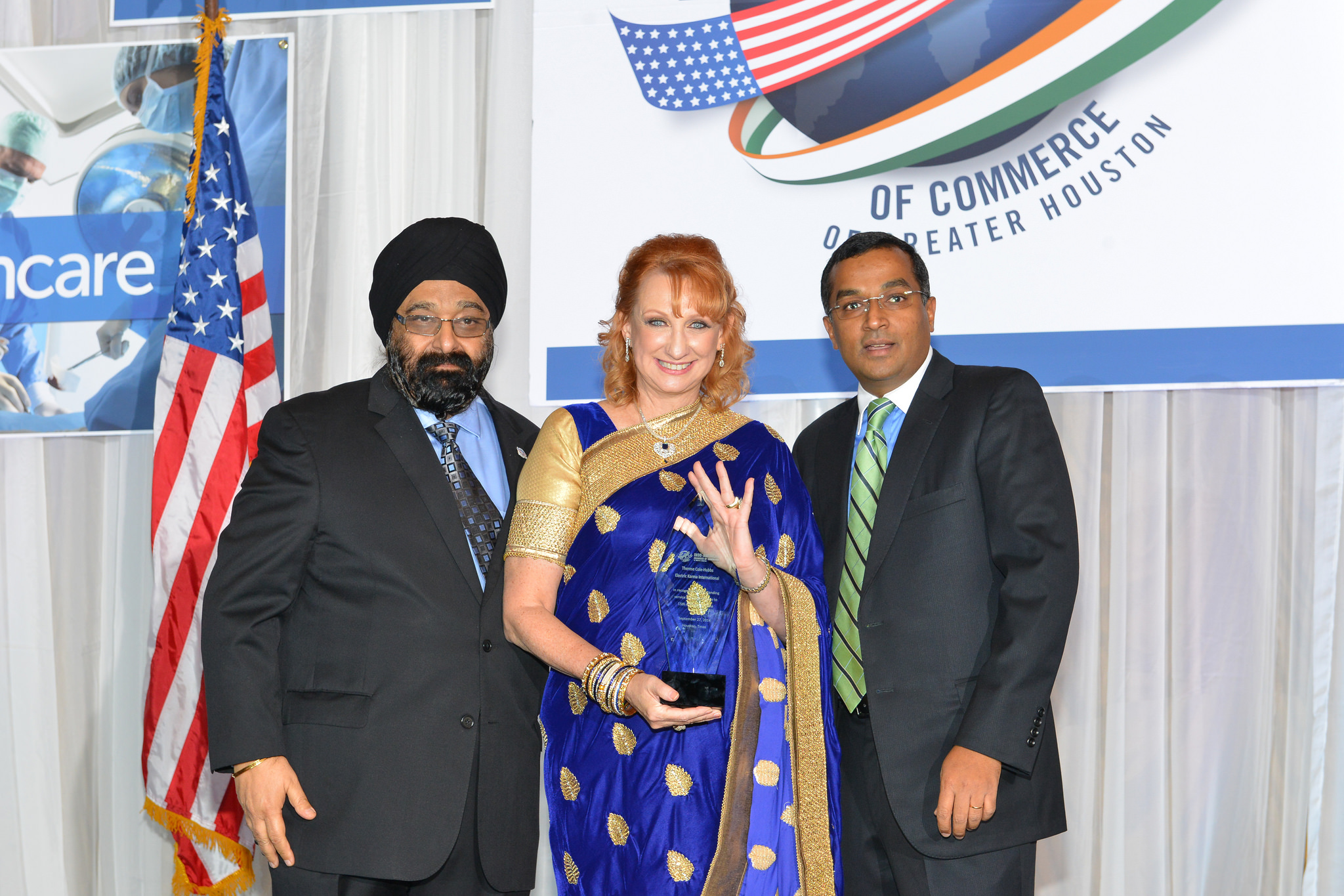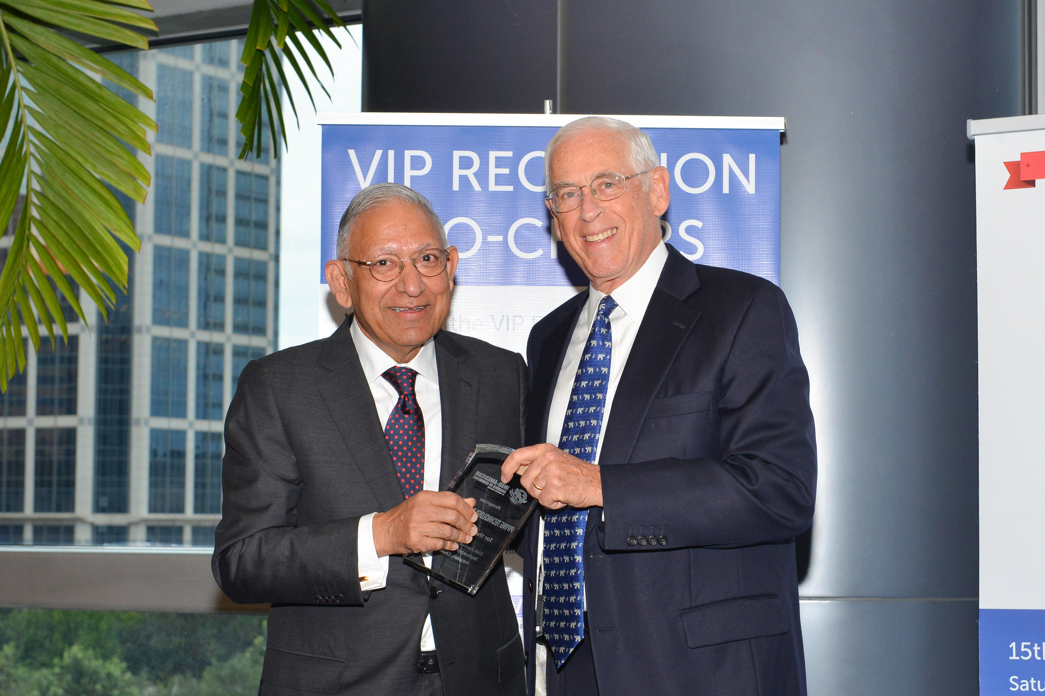 At the Reception, Dr. John Mendelsohn, Past President of the MD Anderson Cancer Center presented plaques of appreciation to the major sponsors of the evening. Sheriff Adrian Garcia took the opportunity to greet the gathering with a traditional Namaste and appreciated the work carried out by the Chamber.