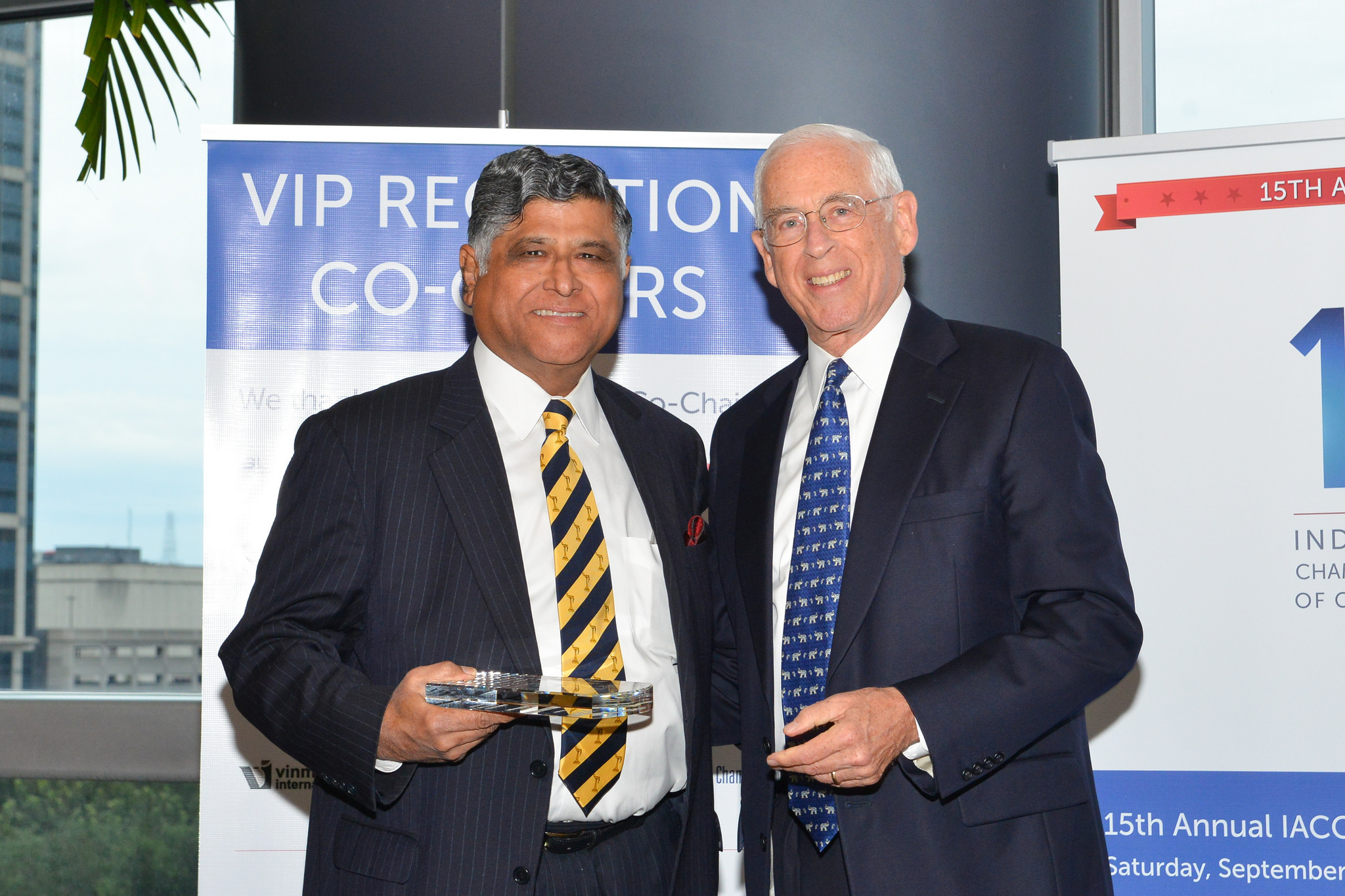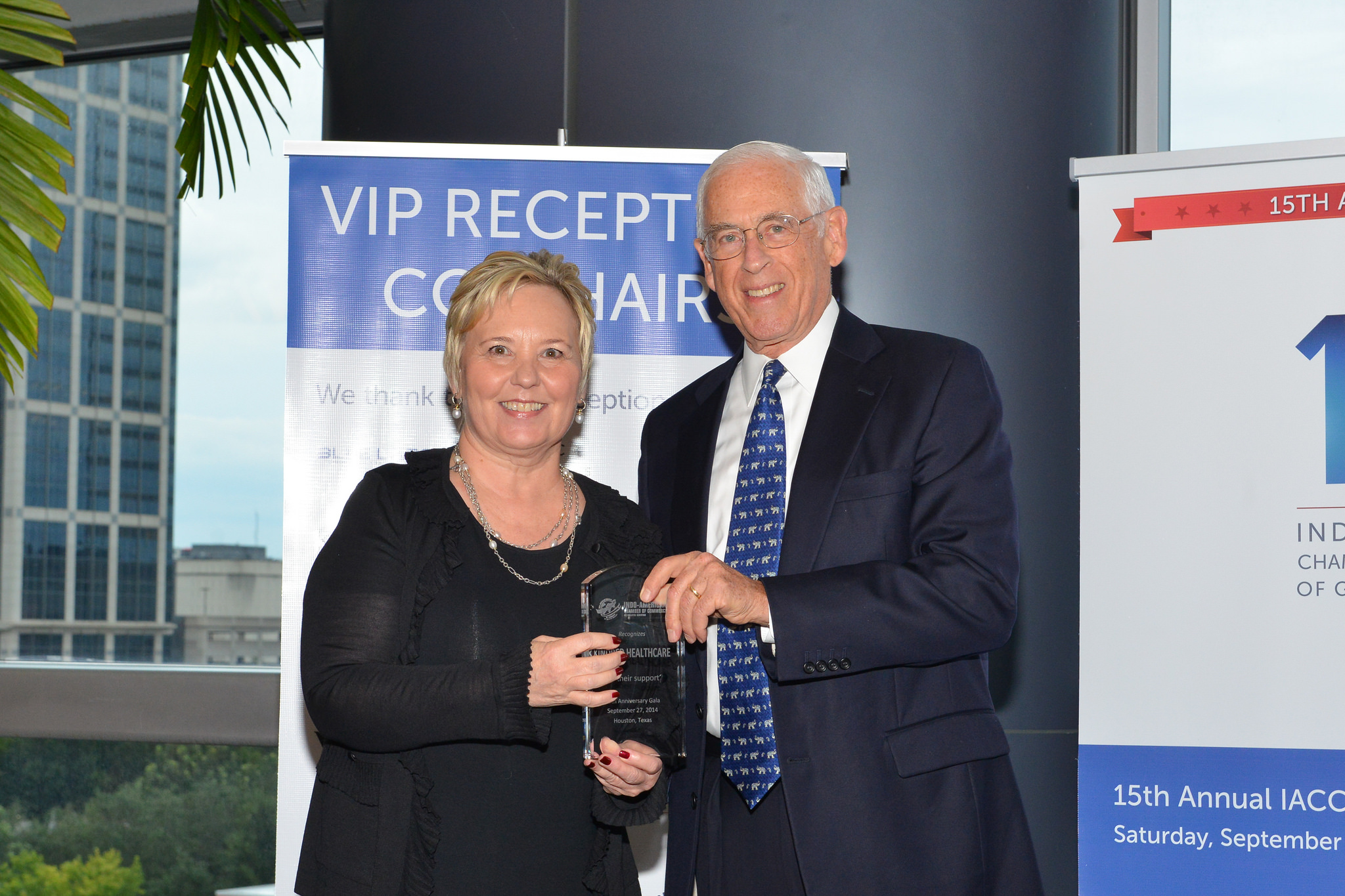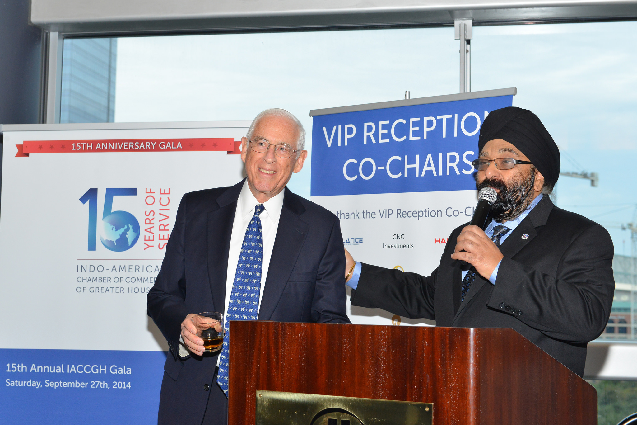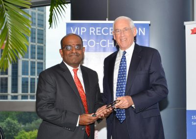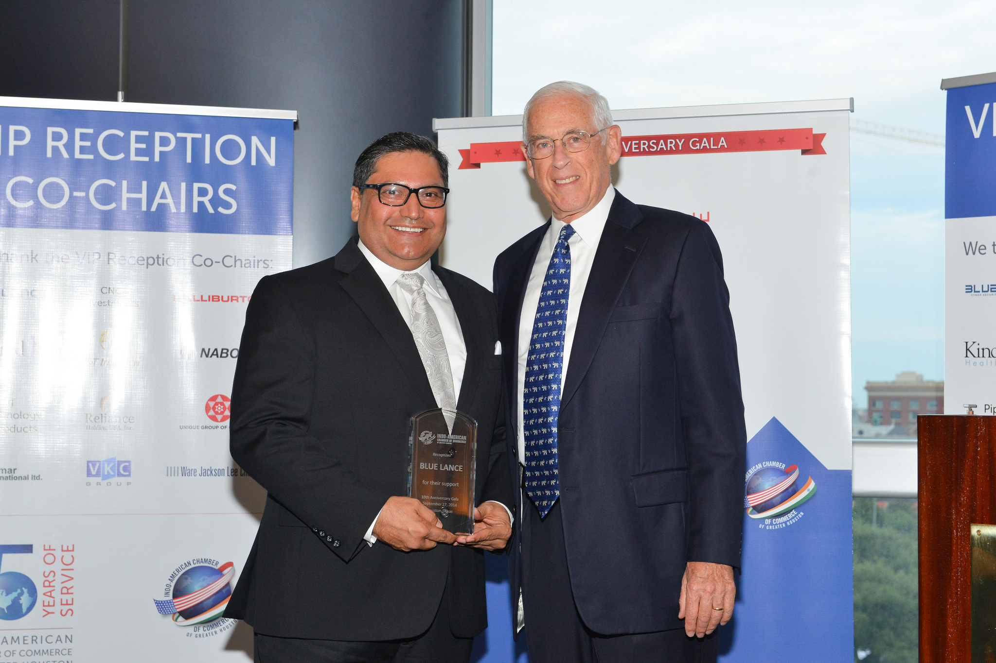 At the Reception, Dr. John Mendelsohn, Past President of the MD Anderson Cancer Center presented plaques of appreciation to the major sponsors of the evening. Sheriff Adrian Garcia took the opportunity to greet the gathering with a traditional Namaste and appreciated the work carried out by the Chamber.