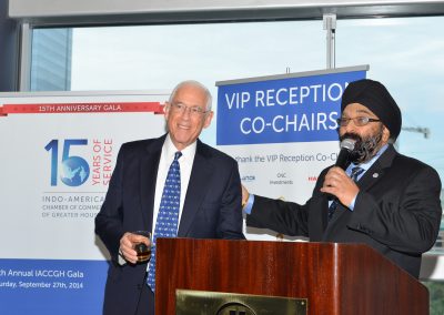 Dubbed by Senator John Cornyn as “the glue” that holds the Chamber together and by IACCGH President Sanjay Ramabhadran as the name that is “synonymous” with the Chamber, Executive Director Jagdip Ahluwalia welcomed the gathering. He reflected that the Chamber had created a strong relationship with local economic agencies over the past 15 years which “continues to this day.” He expressed his pride at the Chamber’s achievements in the energy and education sector as well as the “job creation that’s happening.” He encouraged everyone to go through the Gala magazine to get a full picture of the Chamber’s history, work and accomplishments over the past 15 years.