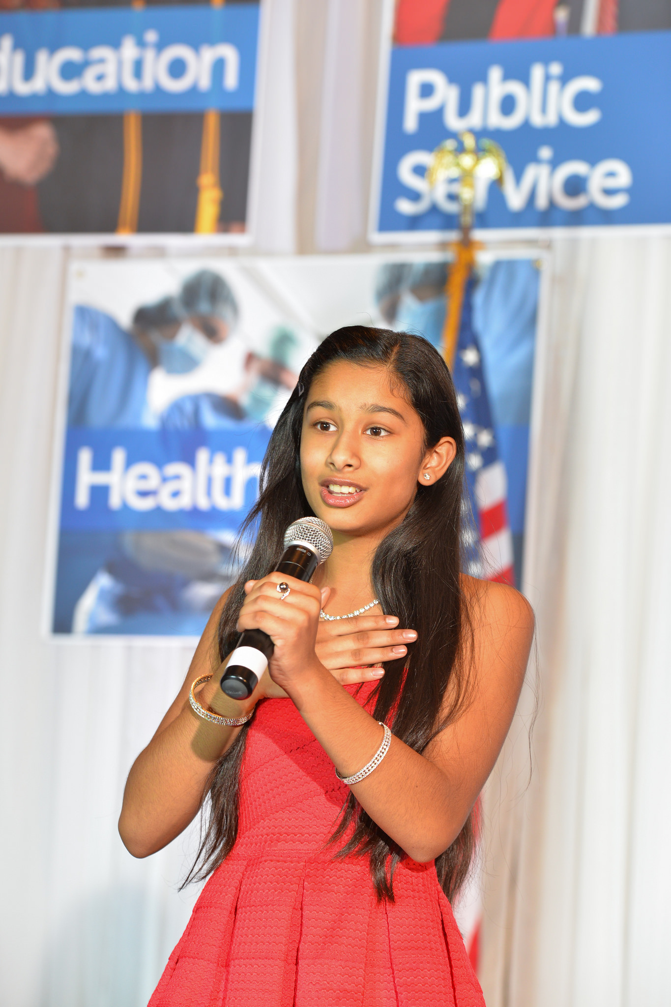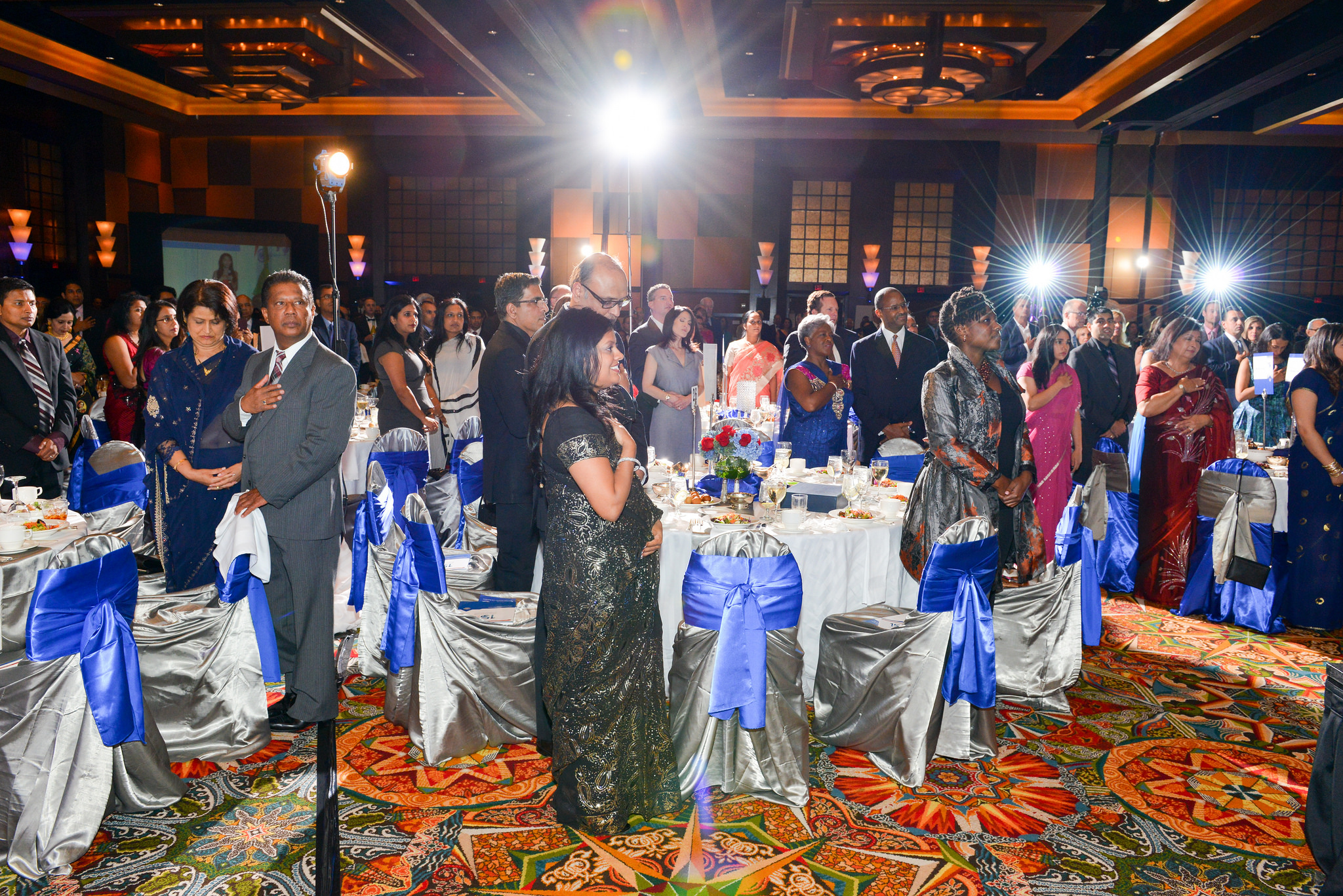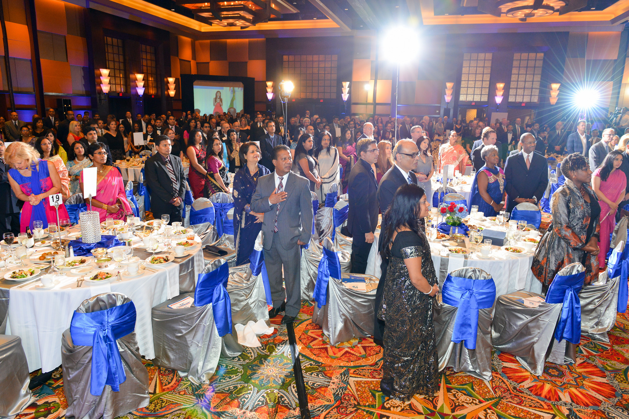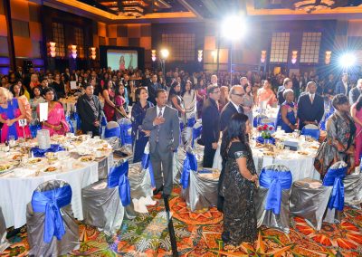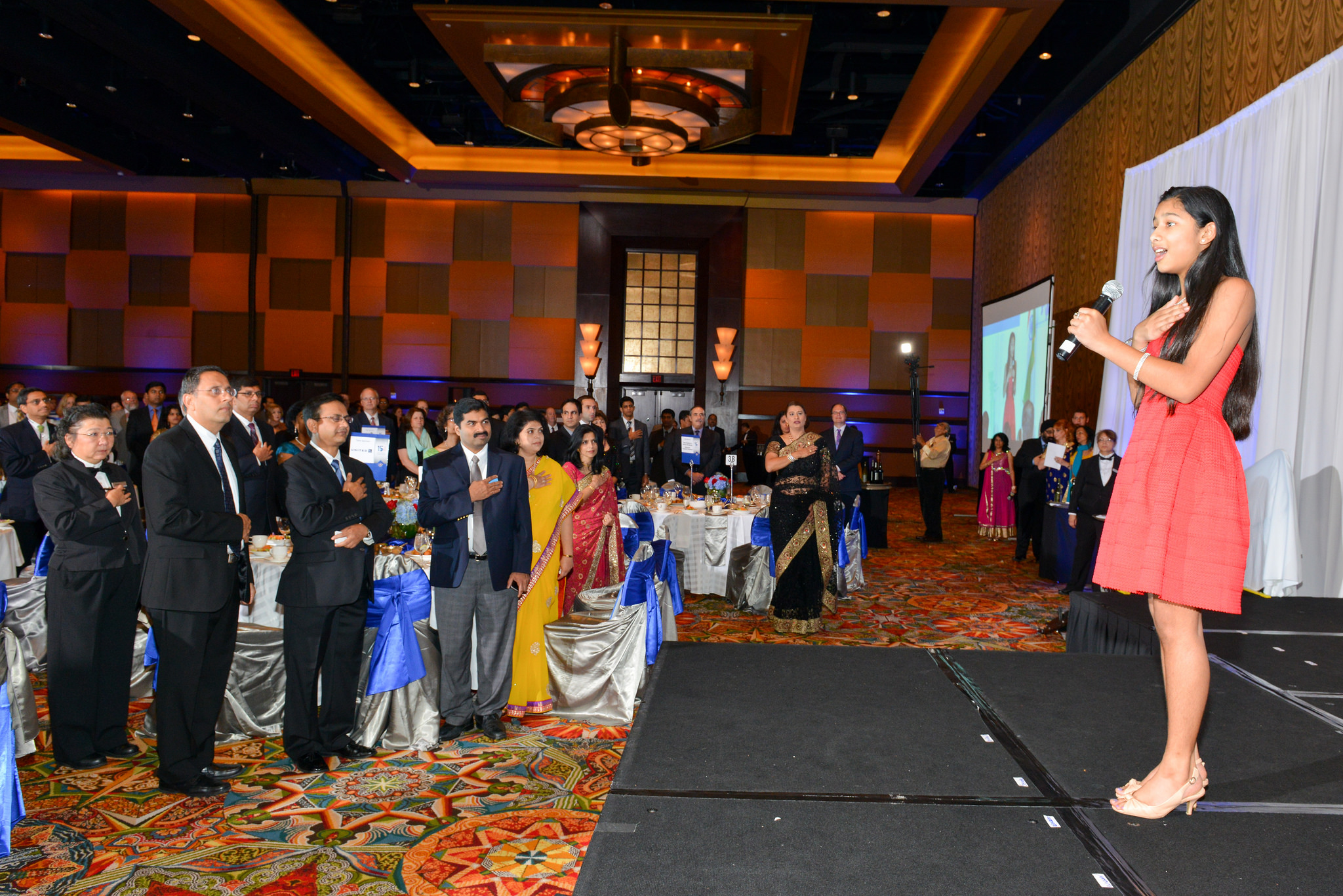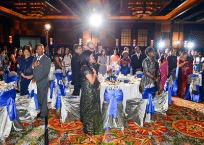 Setting the tone for the evening was the energetic dhol player who led the guests into the ballroom where Chloe Choudhury vowed the audience with her rendition of the Star Spangled Banner as well as the Indian national anthem. Raashi Vats of Fox TV was the EMCEE.
