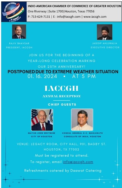 Postponed: Today’s IACCGH Annual Reception at City Hall , Houston