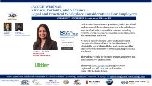In this virtual complimentary webinar, Nehal Anand will explore some of the most common workplace challenges associated with the virus and the vaccine, including return to work protocols, vaccination status disclosures, and vaccination mandates.