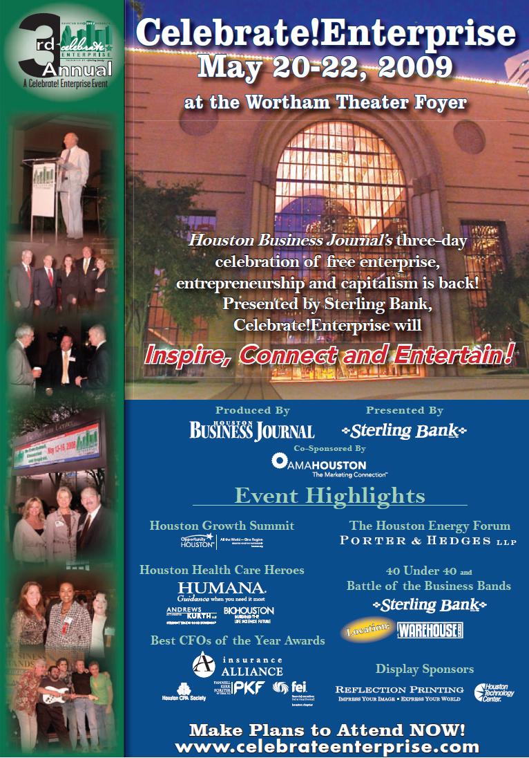 Celebrate!Enterprise is a 3-day multi-event from May 20 to 22, 2009. It is a celebration designed especially for C-level executives and business leaders to share ideas, gather insight and celebrate capitalism and the entrepreneurial spirit.