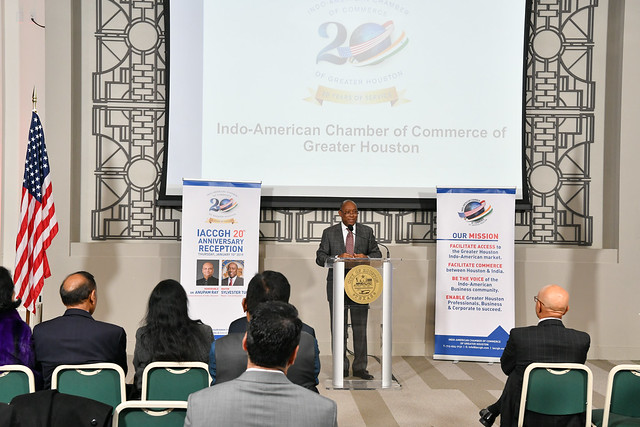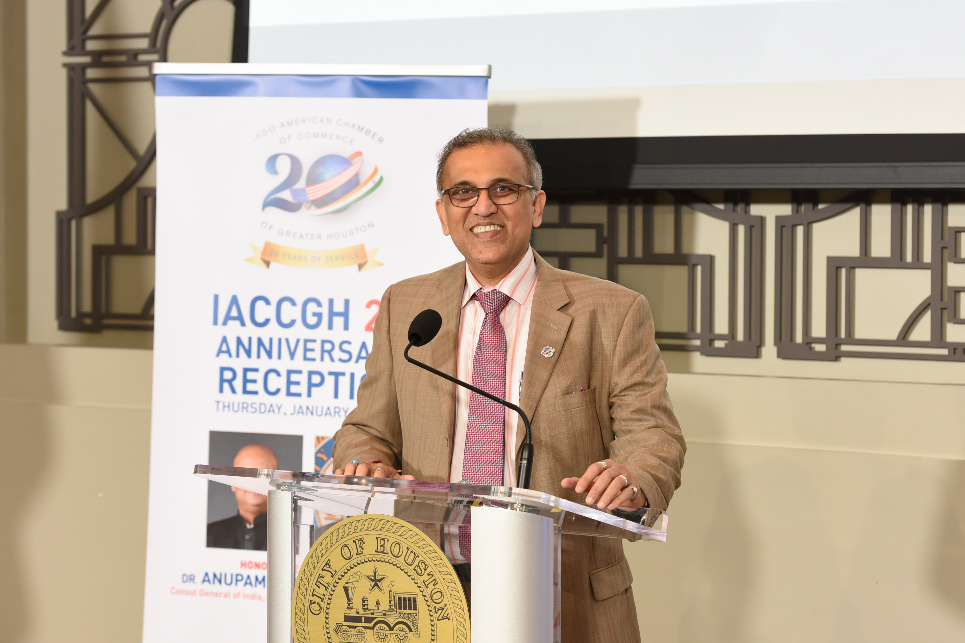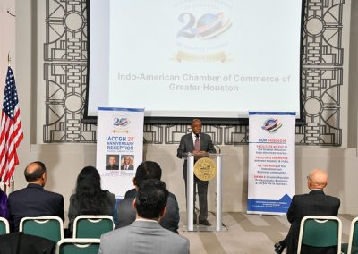The Chamber commemorated the start of its 20th Anniversary at the Houston City Hall with the Guests of Honor Mayor Sylvester Turner and Indian Consul General Dr Anupam Ray.