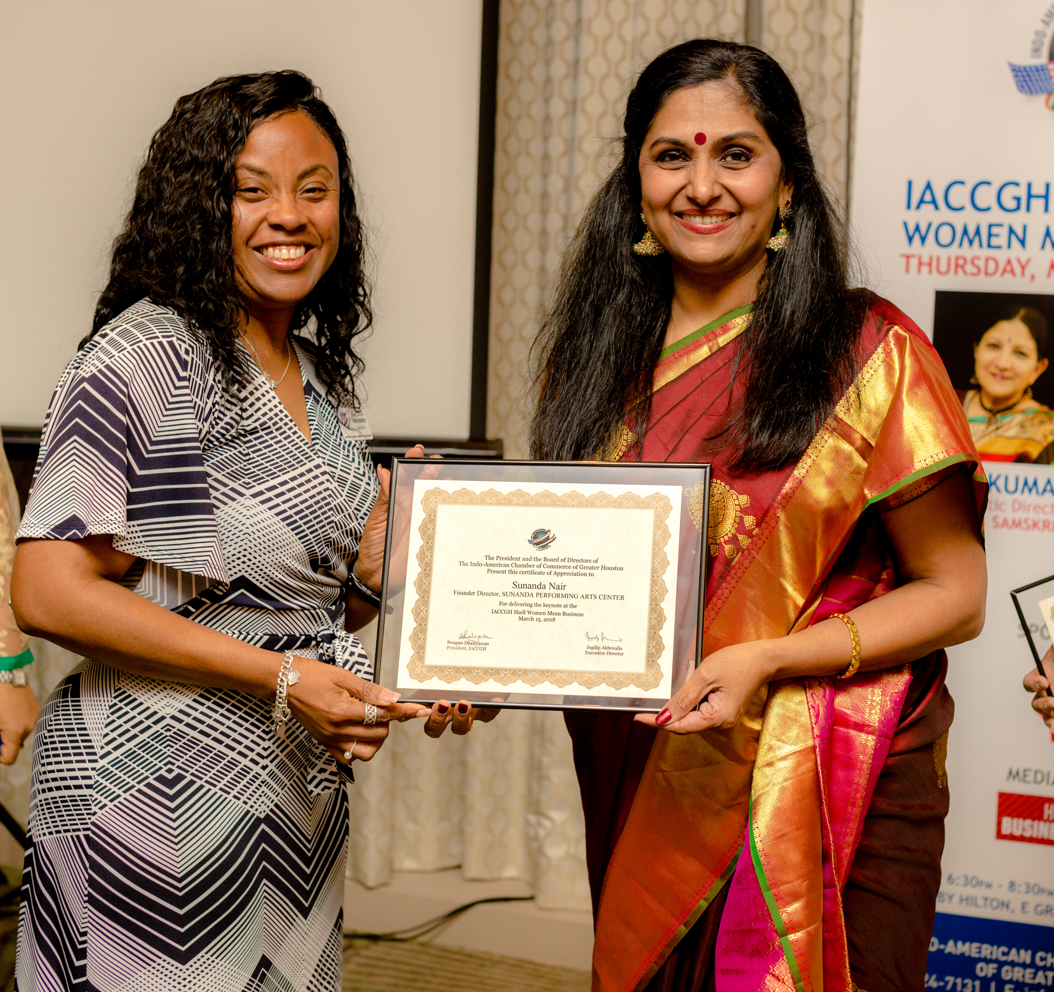 President Swapan Dhairyawan and Event Chair Joya Shukla, Past President IACCGH, welcomed the guests and the two distinguished keynote speakers of the night; Rathna Kumar, Artistic Director Samskriti and Sunanda Nair, Founder Director Sunanda Performing Arts Center.