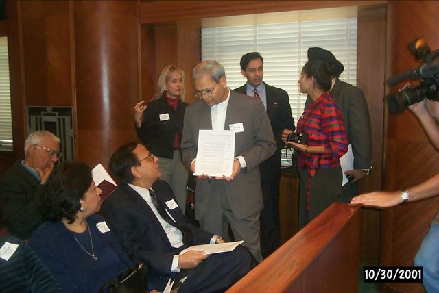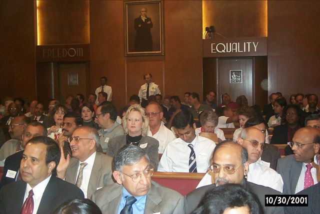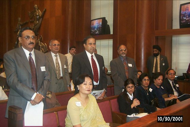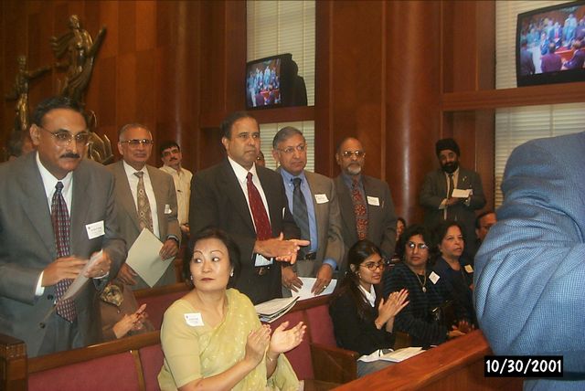 Mr. Ashoke Nath, President of the Indo-American Chamber of Commerce, addressed the city council and said, “Today we stand here with you as Fellow-Americans and Houstonians of Indian origin. We are known as the Indo-American Community of Greater Houston. Our love for this country and the principles she stands for are as dear and precious to us as any other red blooded American. And one day in the near future we hope to see one of us occupying one of the chairs in this hall.”