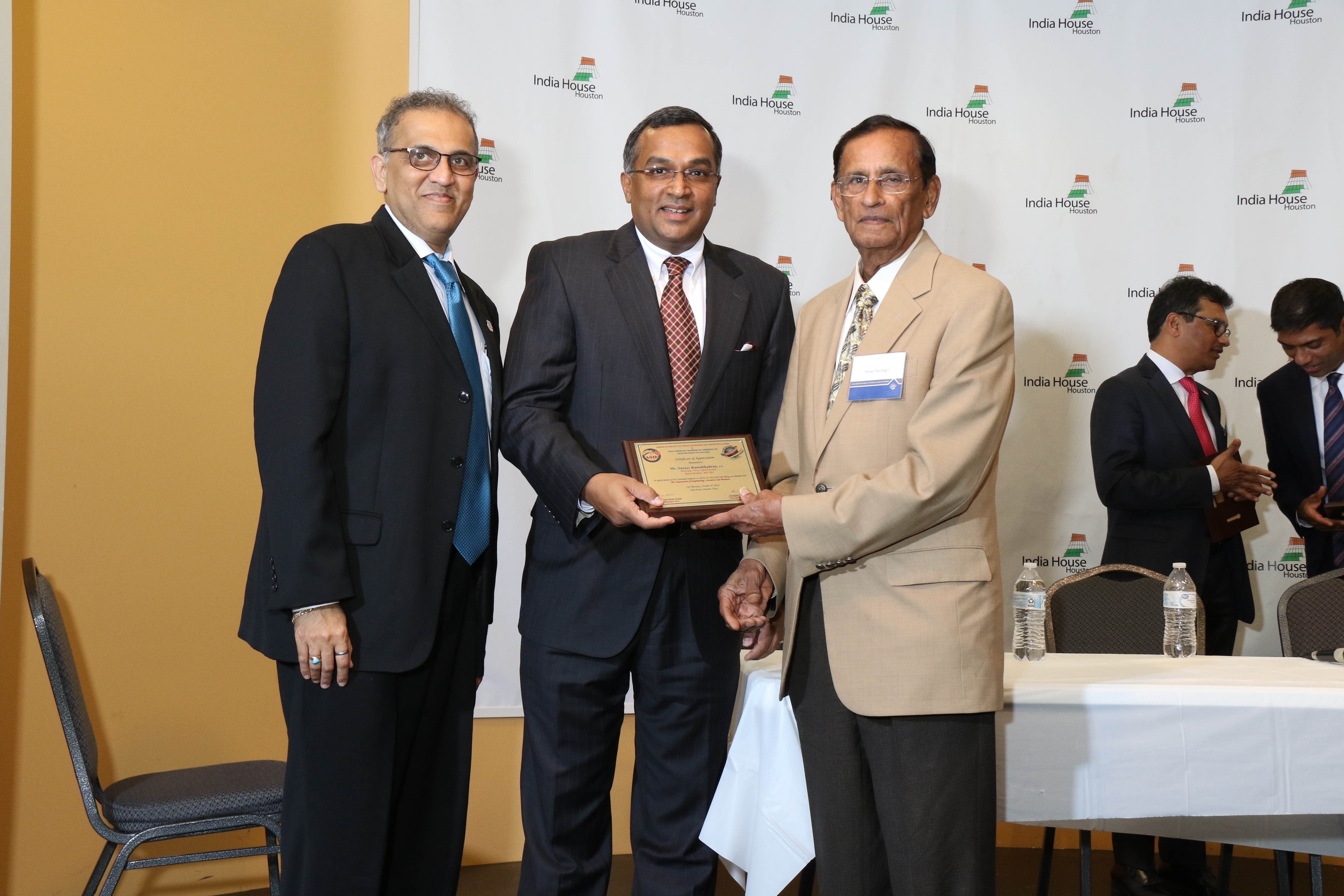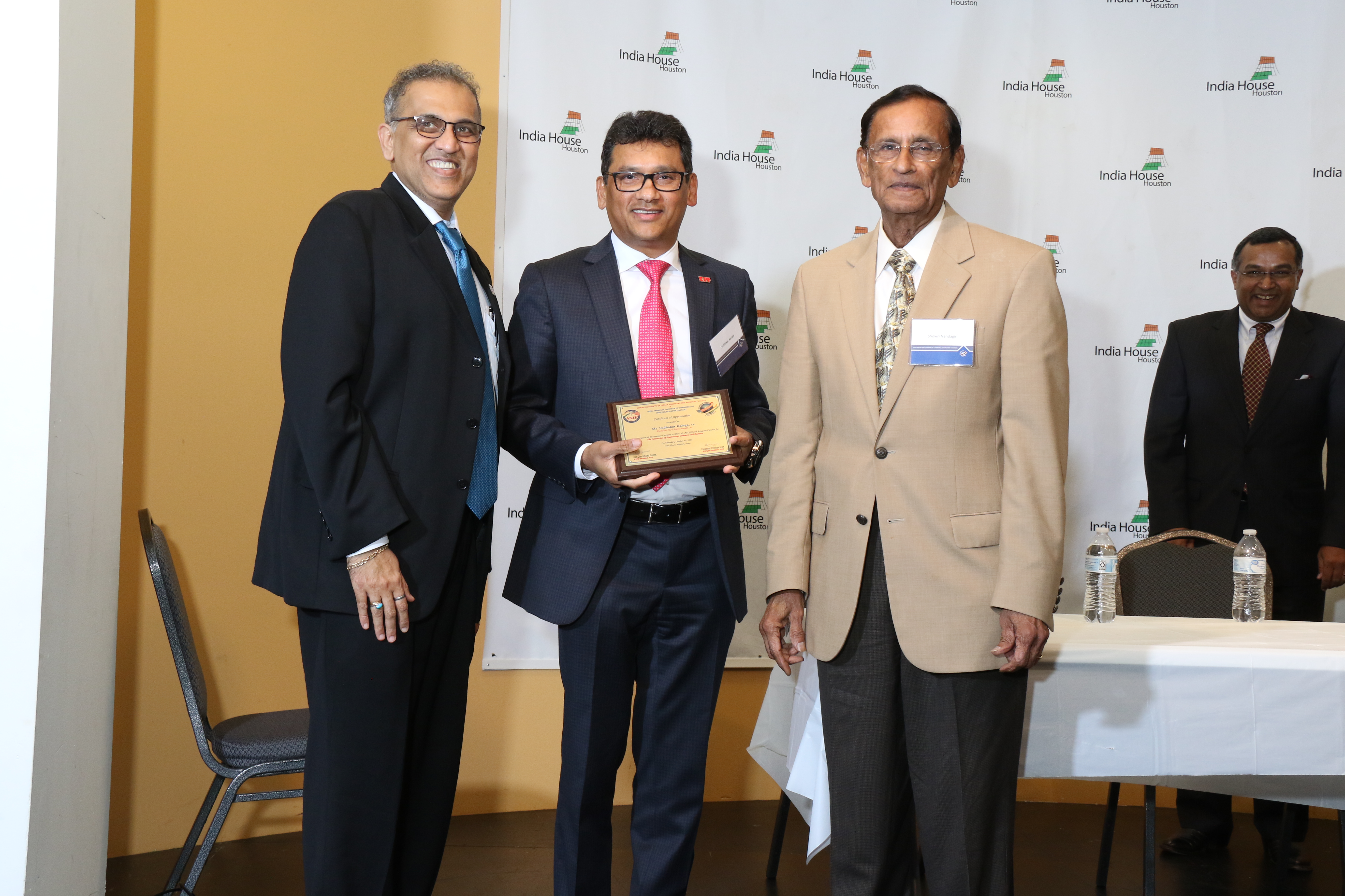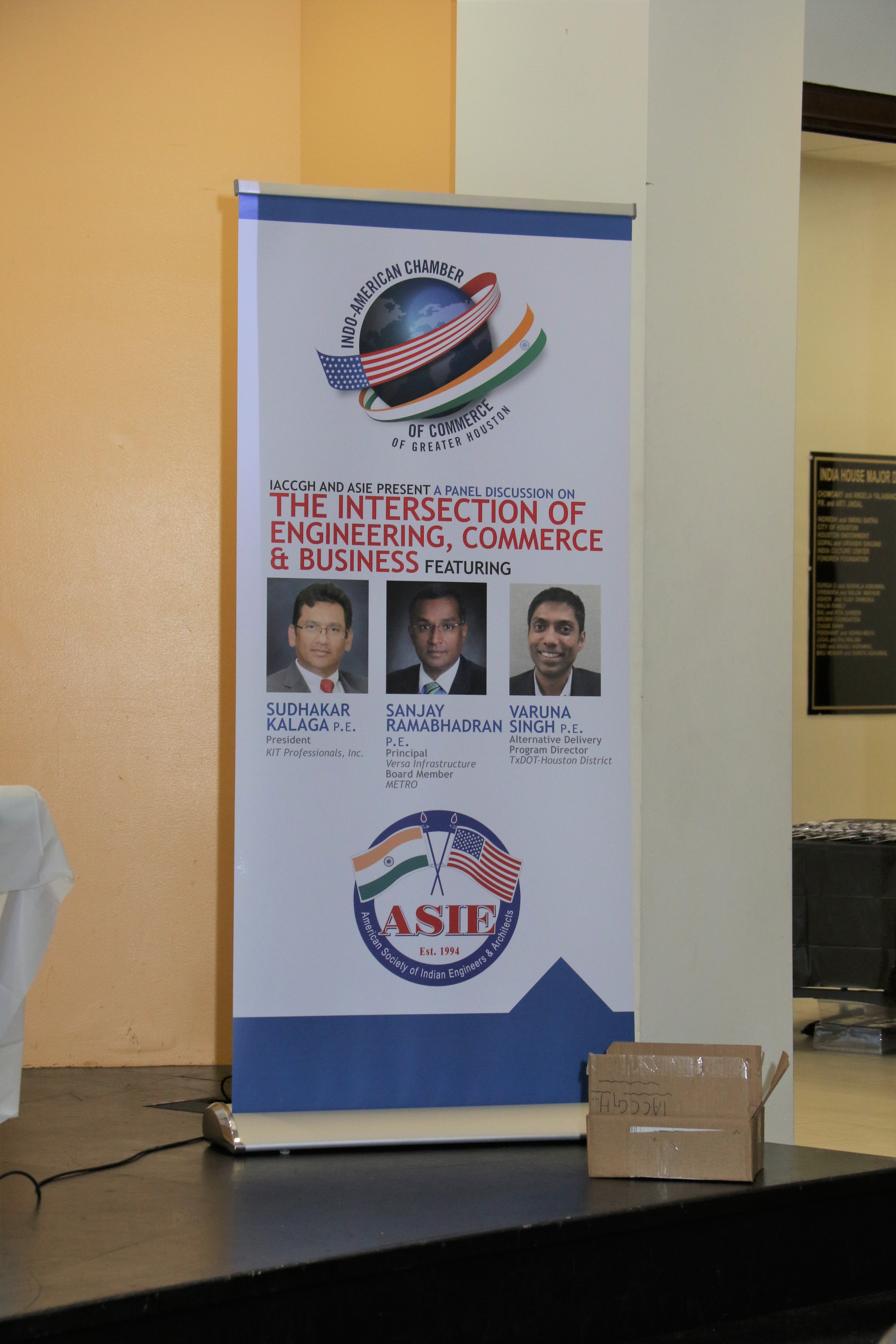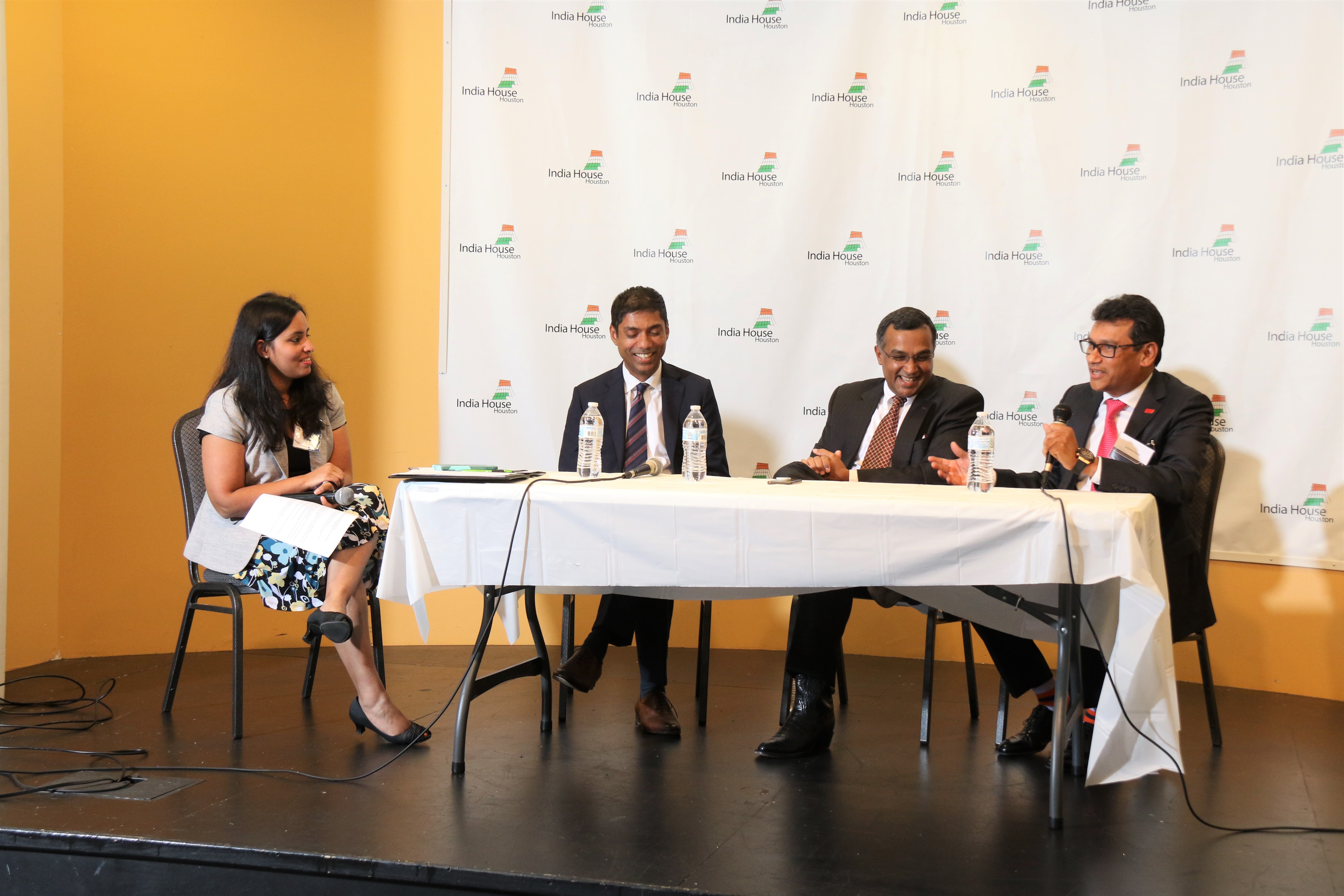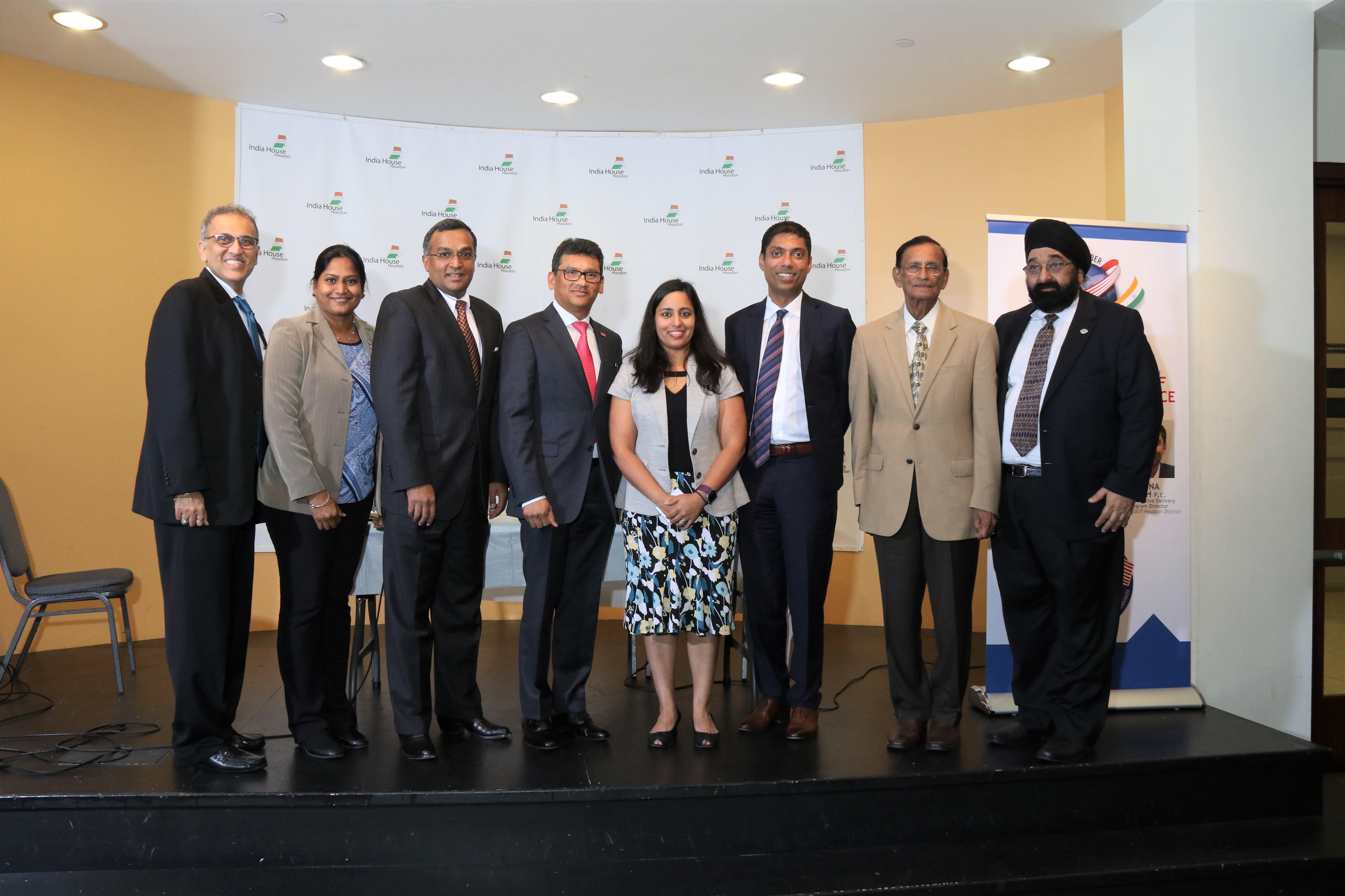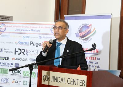The Indo-American Chamber of Commerce of Greater Houston (IACCGH) and American Society of Indian Engineers and Architects (ASIE) hosted their first joint event at India House on October 4, 2018. The event presented three prominent engineering and business leaders; Mr. Sudhakar Kalaga, President – KIT Professionals, Inc., Sanjay Ramabhadran, Principal, Versa Infrastructure and METRO Board President and Mr. Varuna Singh, Alternate Program Director for TxDOT-Houston for a panel discussion titled “The Intersection of Engineering, Commerce and Business”. IAACGH’s Executive Director Mr. Jagdip Ahluwalia started the proceedings by welcoming the audience to the event following which, Chamber President Mr. Swapan Dhairyawan gave an insight as to the collaboration with various Associations during the year and ASIE’s Secretary and Board Member Ms. Chaitanya Gampa update the ASIE activities. The Program Chair and Board Member Ms. Archana Sharma, served as the moderator for the panel discussion, took over the stage and shared her excitement in presenting this event with the hope that it benefits members from both organizations. She said the goal for the event was to present speakers from different paths of life “public, private and entrepreneurial” to discuss engineering, business and commerce that lead to the panel of the day. She introduced each speaker by sharing a personal note about their childhood dream for a career – a cricketer for Mr. Kalaga, a bus driver for Mr. Ram and a lawyer for Mr. Singh.